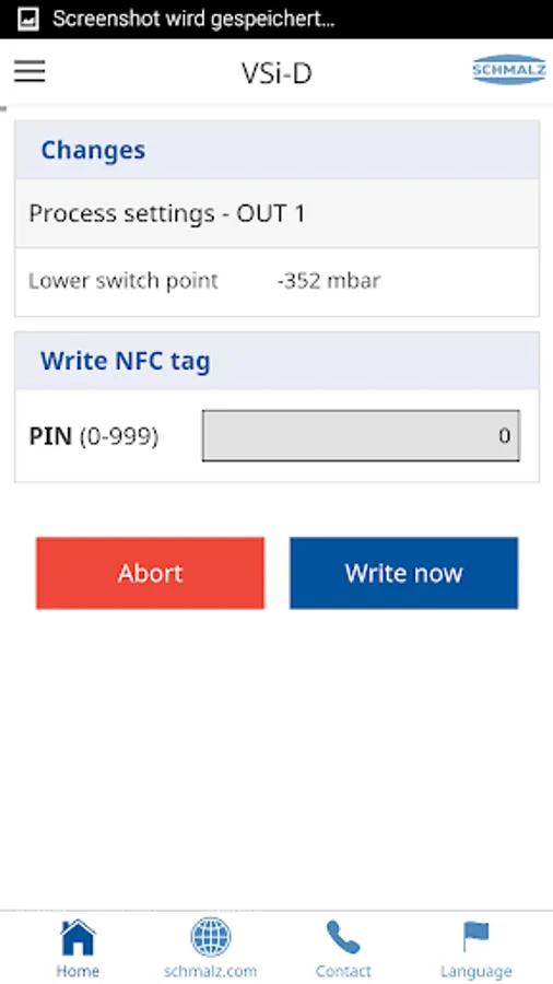 If the Schmalz device has no power supply, data can still be read. Changes in values will be saved and activated once the power supply is restored.