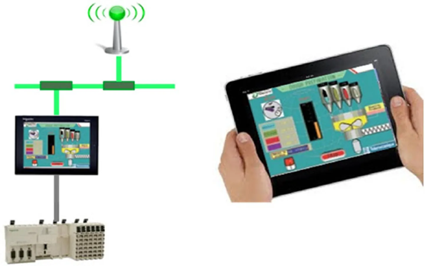 - With Vijeo Design’Air DEMO, use your tablet or smartphone to simulate a connection to a Magelis HMI terminal.