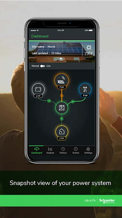 The InsightMobile App makes remote monitoring of your solar and storage solution easy. Working hand in hand with the Schneider Electric Insight Facility, Insight Home, Conext ™ Gateway, and Insight Cloud, the InsightMobile App allows quick access to critical site information from anywhere with an internet connection or local access point to Gateway.