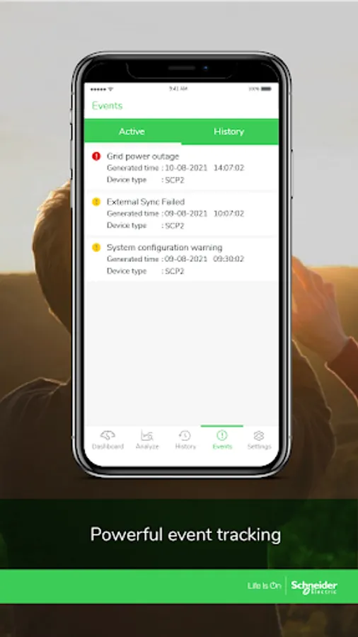 Schneider Electric's monitoring app for off-grid and grid-tied solar and storage applications. Available for the Schneider Electric Conext range of battery-based solar inverters and CL range of grid-tied inverters.