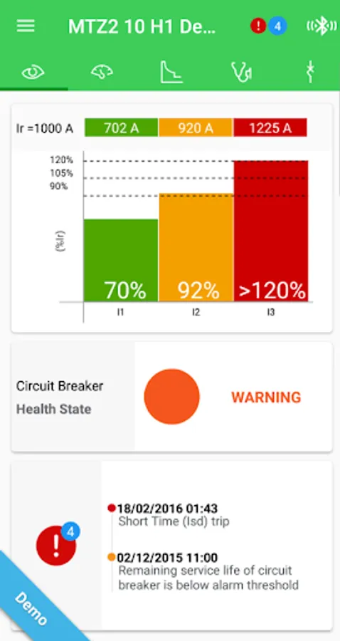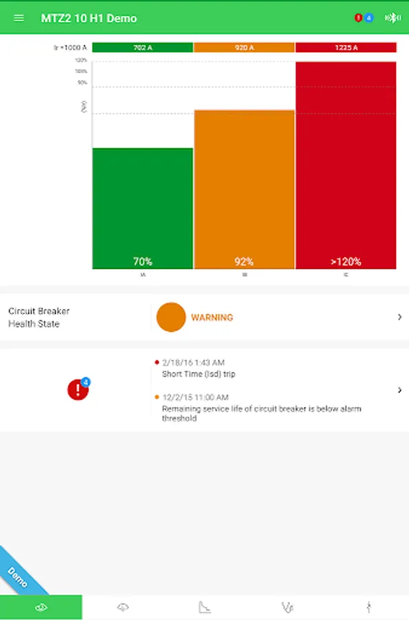 Get real time notifications about the electrical installation: load levels, health status, warnings and alarms, protection settings…and more!