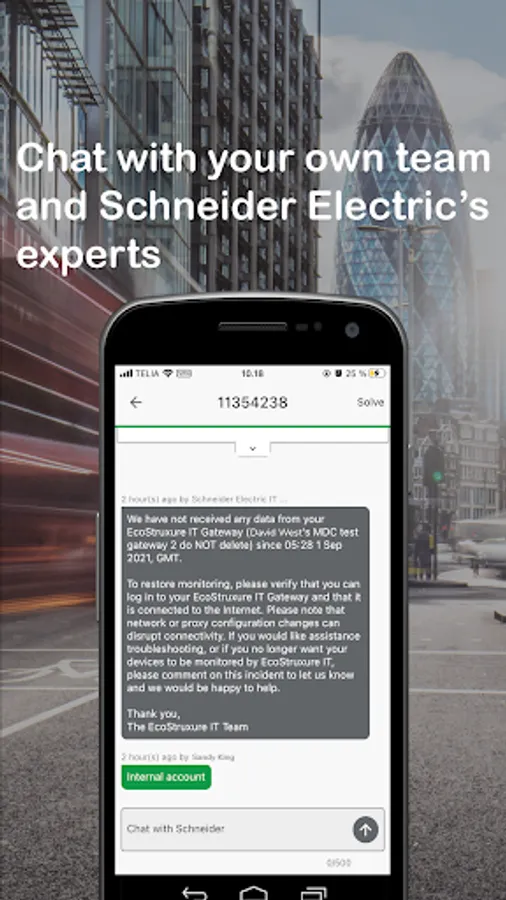 The EcoStruxure IT app requires download, configuration and setup of EcoStruxure IT Gateway via: www.ecostruxureit.com