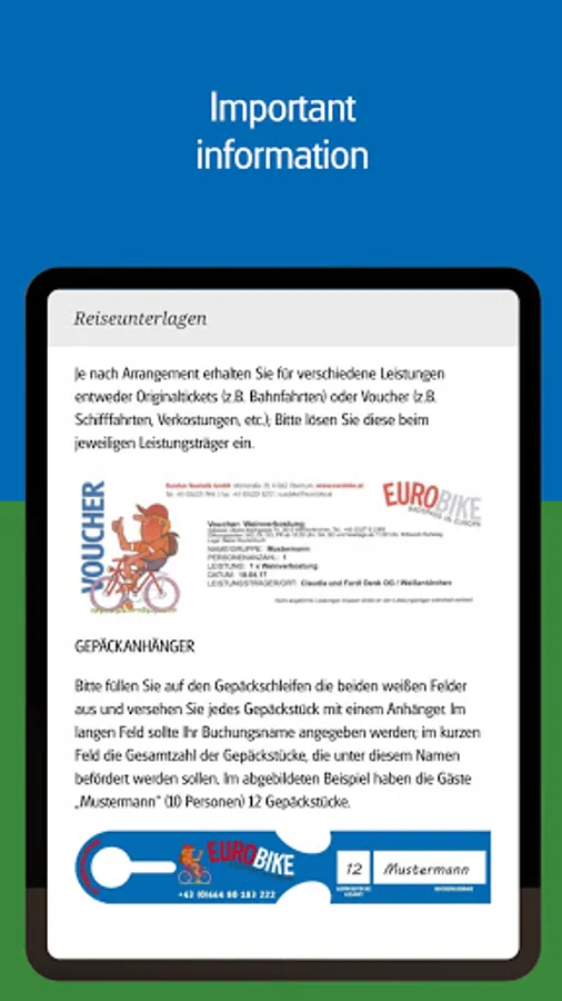 EUROBIKE or EUROHIKE provides the login details for your booked holiday and after download all relevant routes and information are available offline. The app will be your reliable companion before you start your holiday until the last day.