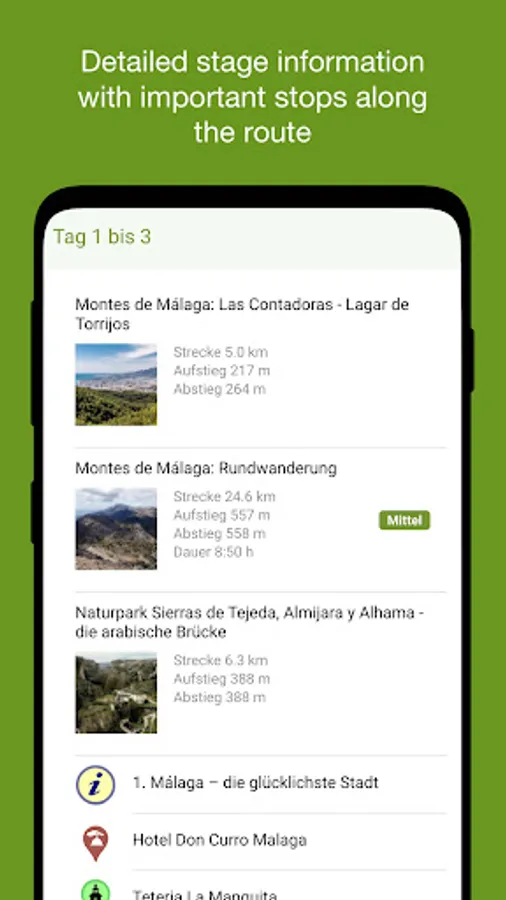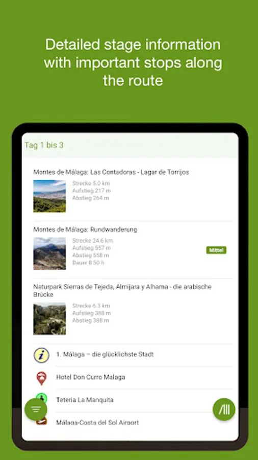 Our app accompanies you virtually through your hiking holiday. Let yourself be navigated from the airport to your hotel. Download the GPS hiking or cycling routes on your smartphone and navigate in offline mode. With the app, you have your travel documents easily at hand at all times.
