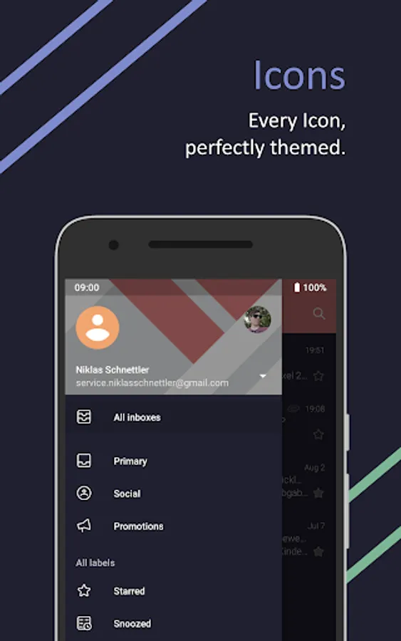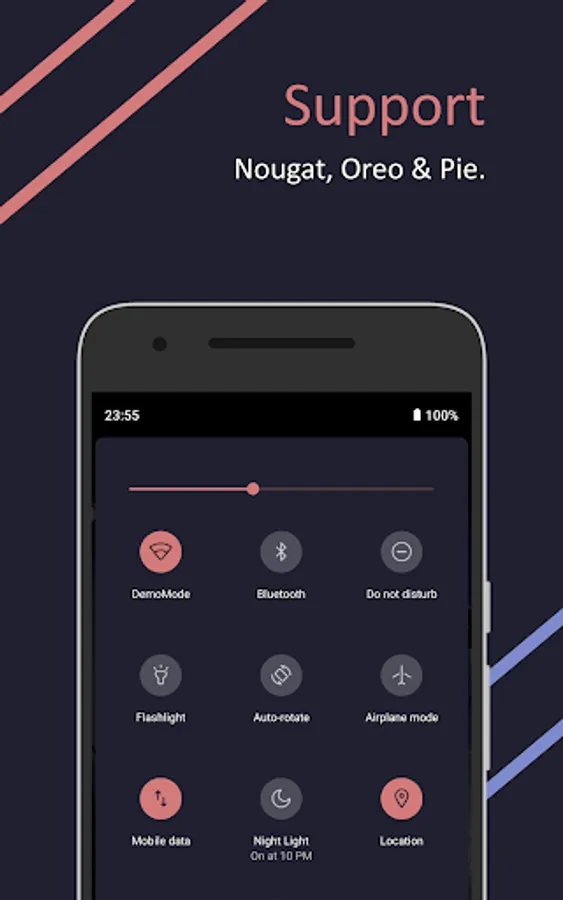 Screenshots show the theme running on Android 9. It might look slightly different on 7.1, 8 and 10.