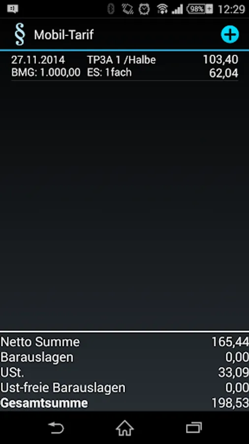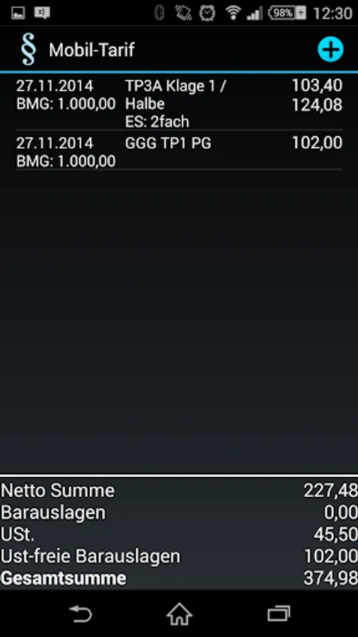 With the present mobile tariff calculator Tariff items and costs directories according RATG and GGG can be calculated and stored for Austrian lawyers.