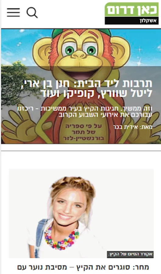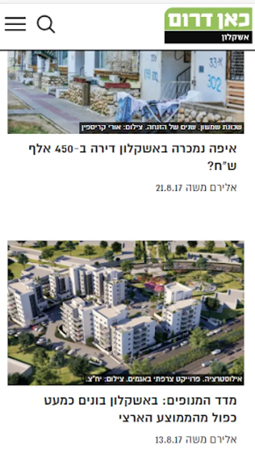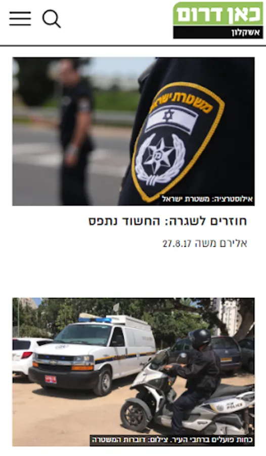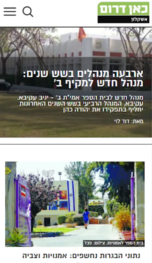 "Here in South - Ashkelon", the application of the local newspaper seller, popular and oldest. Since its founding the newspaper he keeps his place as a communications researcher, in-depth and involved in dealing with all aspects of life in Ashkelon and the environment. Web site and application can interact with the newspaper to bring users updated content in real time all the news industry - the environment, education, health, real estate, infrastructure, crime, transport, culture and sport. It also deals with the gossip site, the events of leisure and consumerism and provides its readers articles opinion, personal columns, special sections and recommendations of all the interesting things happening in the city.