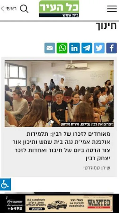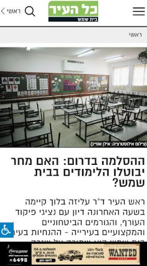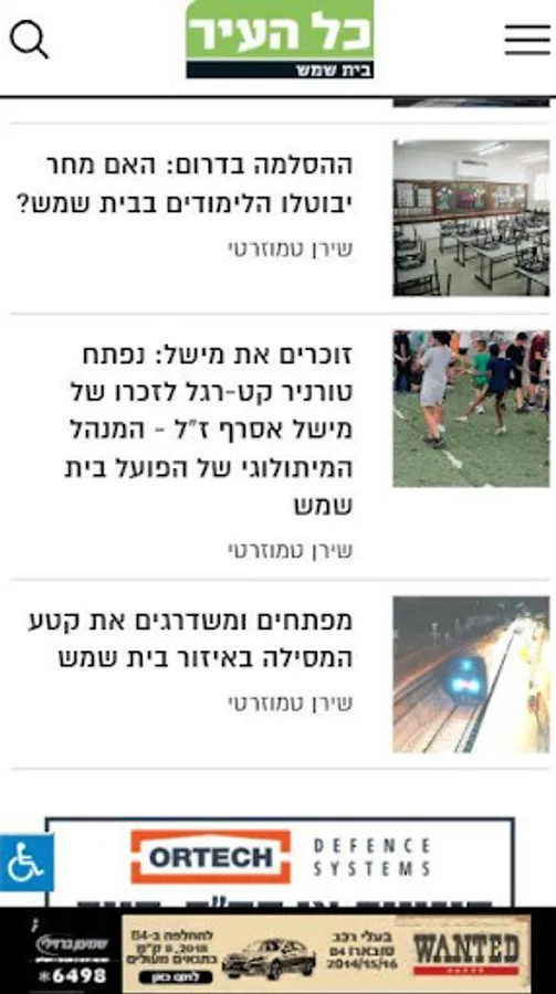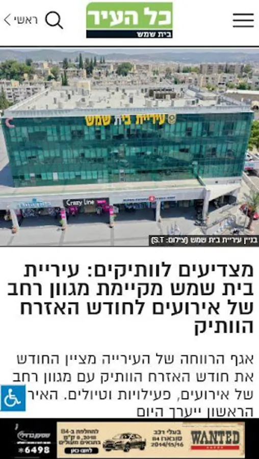 "All of the City - Beit Shemesh" is the app of the "All of the City" newspaper, the big Jerusalem local newspaper. Since its founding in 1979, it has maintained its position as an investigative, in-depth and engaged media that deals with all aspects of urban life in Jerusalem and the surrounding area. The website works in conjunction with the newspaper and aims to bring surfers real-time content in all areas of news - urban, regional and local systems, environmental, education, health, real estate, infrastructure, criminal justice, transport, culture and sports. The site also deals with gossip and consumerism. His readers have personal columns and recommendations.