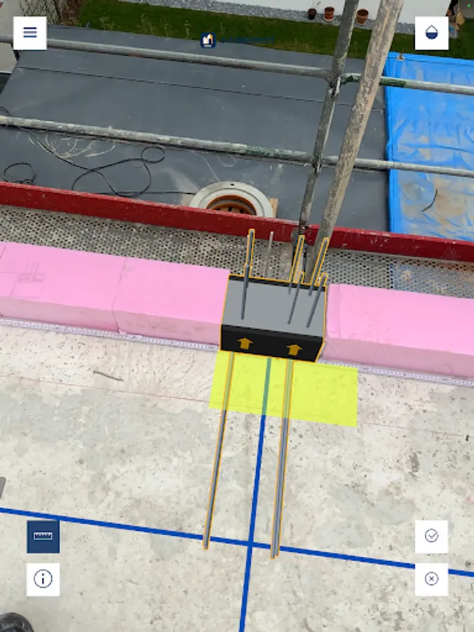 S-Construct supports the installation of Schöck Isokorb® type A and type F products by projecting 3D layout plans from the calculation program "Attika Tool" onto the construction site using augmented reality technology (AR).