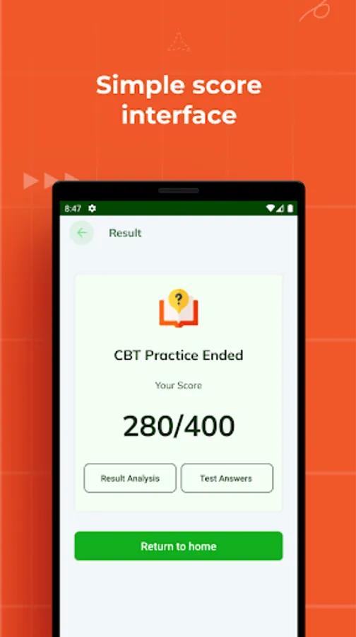 4. Results: After each CBT exam in the app, you'll see a detailed breakdown of your scores in a format that is beautiful and concise