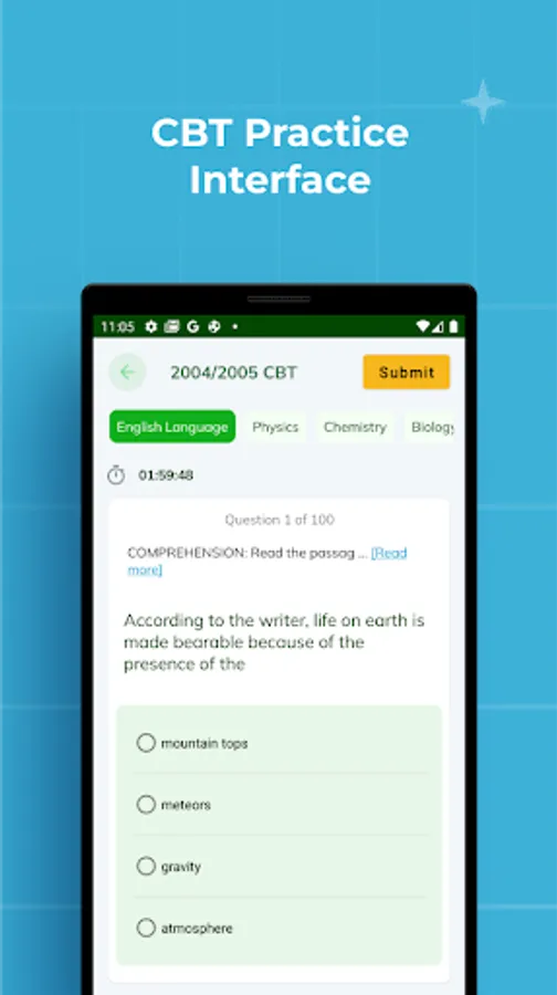By getting and practicing with this app, you can be rest assured that you will get a high JAMB score and then gain admission to your desired course and school of choice.