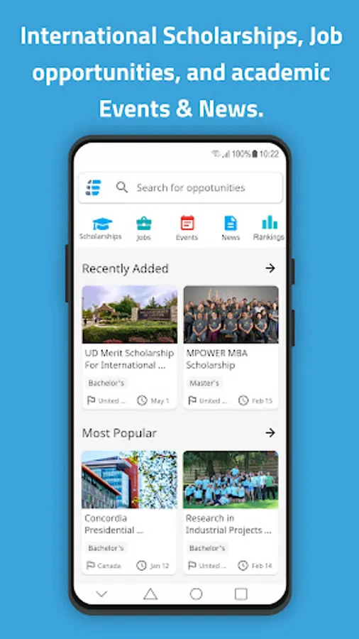 Your dream scholarship and job are under your fingers now! By downloading the Scholar Source app, you can access the top international scholarships and employment opportunities. Besides, it will also announce academic events and news.