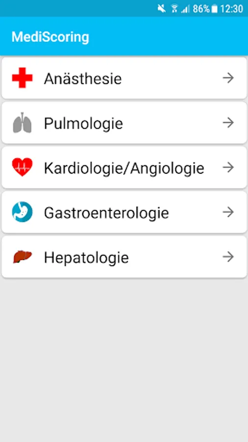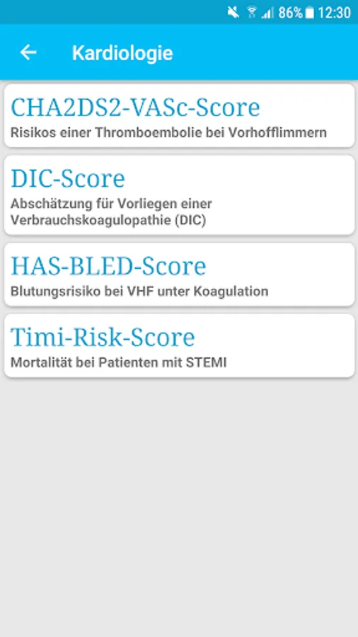 The app contains the most relevant scores for everyday clinical practice