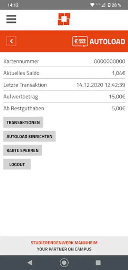 - Autoload card service portal: Here you can view all transactions or block the exchange on your chip card around the clock if you lose your card.