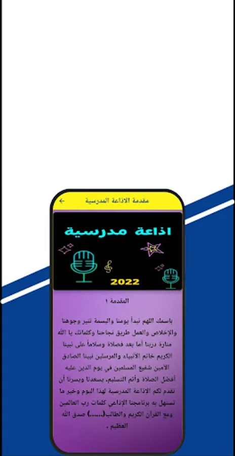 اذاعة مدرسية تطبيق يحتوي على اجمل المقدمات لفقرات الاذاعة المدرسية .