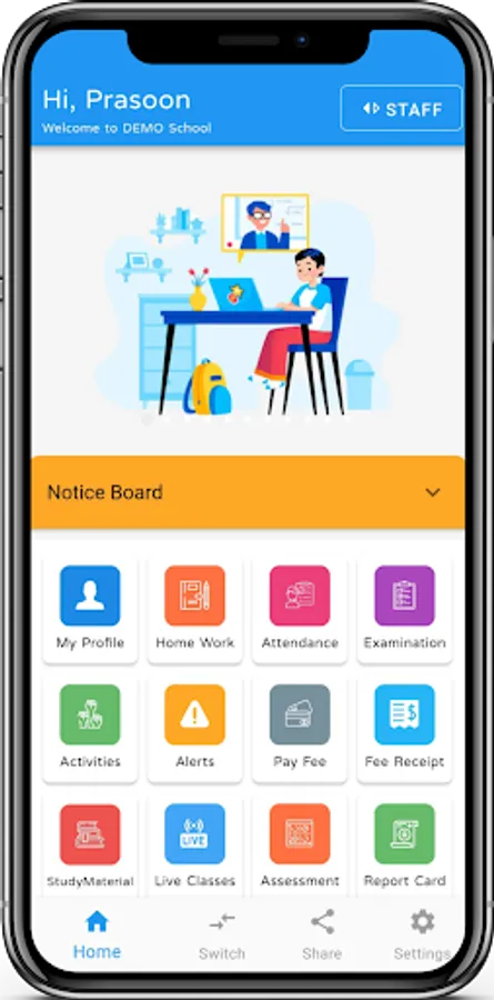 The application is a mobile interface of IQdigit Educational ERP for the Parents/Students & Staff. This is the official application of Almighty Public School, Hamirpur developed, deployed and maintained by IQwing EduInfotech Pvt Ltd. (www.iqwing.in)