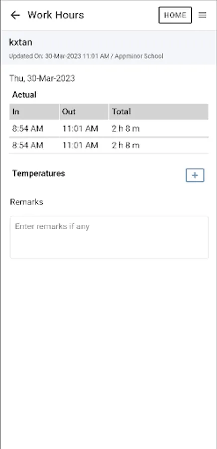 Staff download this app and authenticate themselves via SMS (staff's mobile number must be pre-registered in the system by the schools).