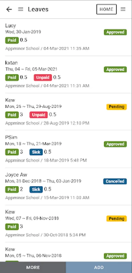 Schools can use this mobile app for internal processes such as staff clock in/out, leave application, payslip distribution, request processing, etc.