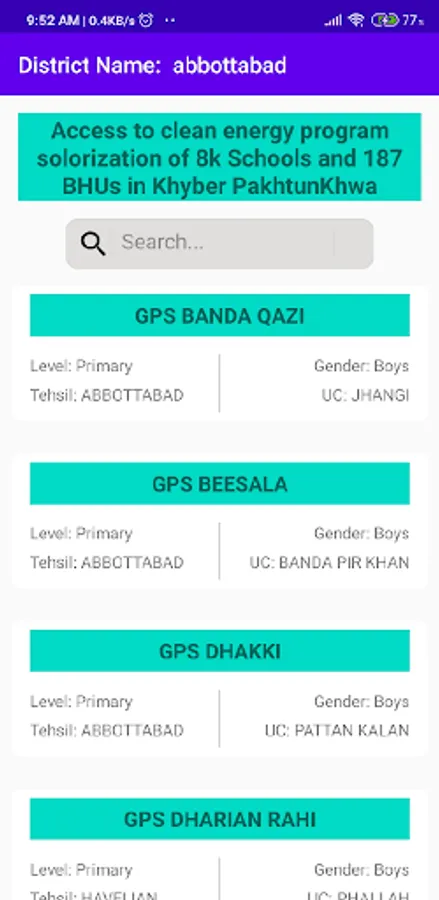 Its a Solar Project Progress Monitoring app, it will keep the project management unit updated regarding the daily / overall progress of the project regarding school feasibility, installation and its completion. This app will also help site engineers to document their site surveys in database through this app.
