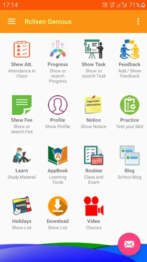 Access profile, attendance, Video Classes, deposit fee, news and events, Hw and CW, Check Progress, Study Material, Practice set. etc.