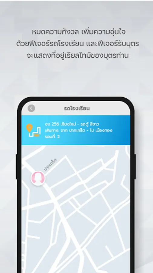 - หมดความกังวล เพิ่มความอุ่นใจ ด้วยฟีเจอร์รถโรงเรียน และฟีเจอร์รับบุตร จะแสดงที่อยู่เรียลไทม์ของบุตรท่าน