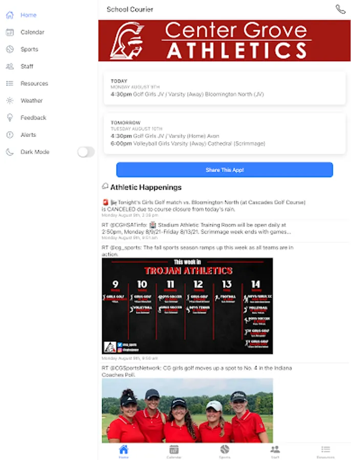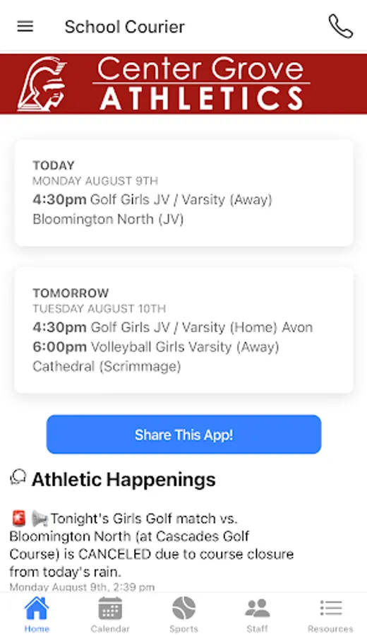 The Center Grove Athletics app for allows student, faculty, parents, and the community keep up-to-date with athletic communication. Center Grove High School is located in Greenwood, Indiana.