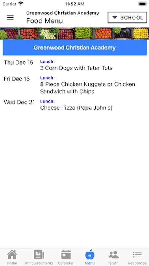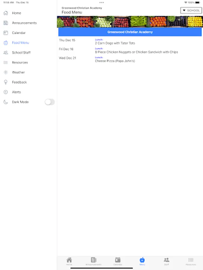 - Food menu for all schools