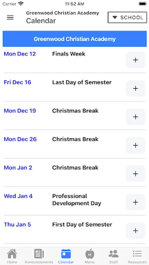- Upcoming school events