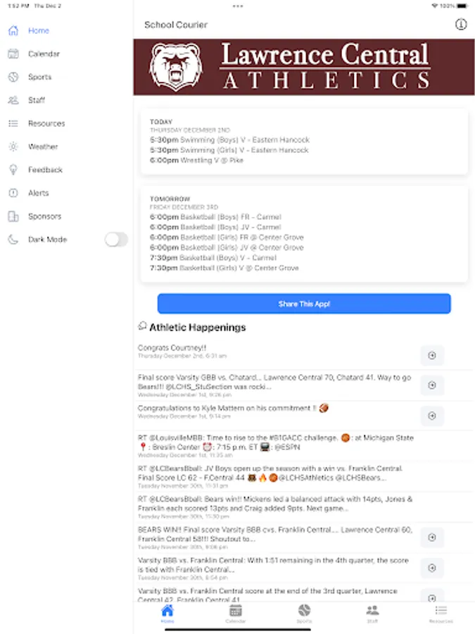 The Lawrence Central Athletics app allows student, faculty, parents, and the community keep up-to-date with athletic communication. Lawrence Central High School (LCHS) is a public high school with more than 2,300 students, in northeast Marion County, Indiana. It was established in 1940 and is one of two high schools in the Metropolitan School District of Lawrence Township.