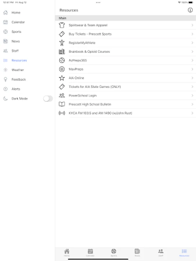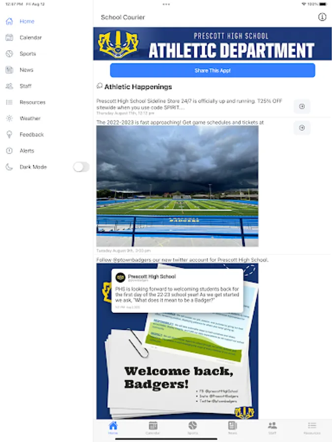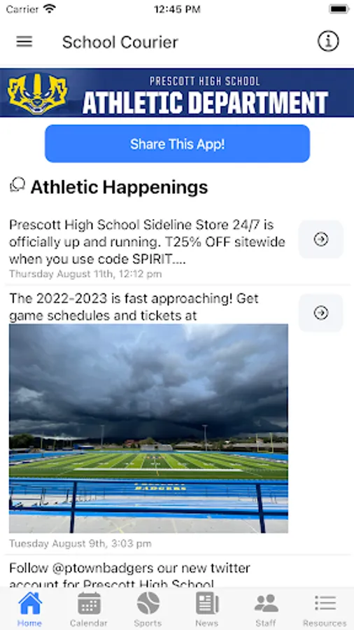 The Prescott Athletics app allows student, faculty, parents, and the community keep up-to-date with athletic communication. Prescott High School is located in Prescott, Arizona.