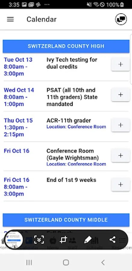 The Switzerland County School Corporation for Android allows student, faculty and parents to keep up to date with school and classroom communication. The app’s intuitive navigation provides quick access to the following: