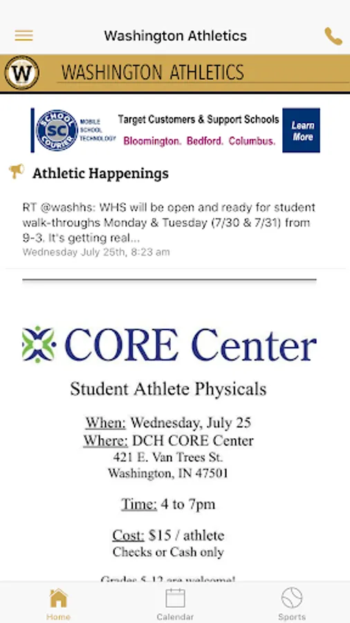 The Washington Athletics app for Android allows student, faculty, parents, and the community keep up-to-date with athletic communication. Washington Community Schools are located in Washington, Indiana, USA. Go Hatchets!