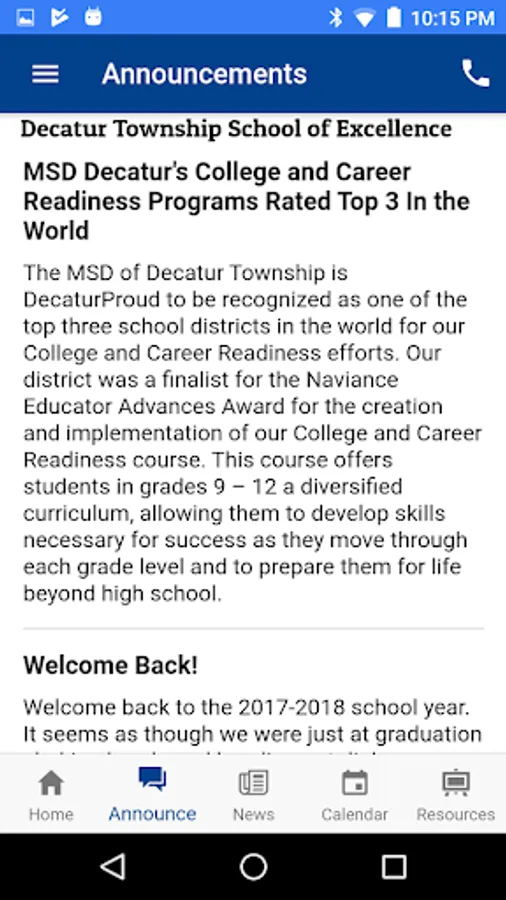 The MSD of Decatur Township app for Android allows student, faculty and parents to keep up to date with school and classroom communication. The app’s intuitive navigation provides quick access to the following: