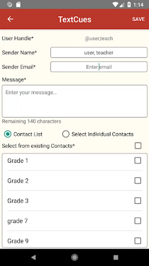 The app uses your classes, groups, and Contact Lists from the SchoolCues backend.
