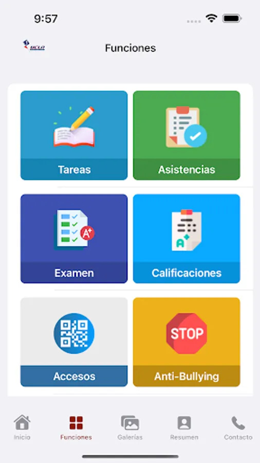 Notices, events, tasks, grades, galleries, contact, notifications and more.