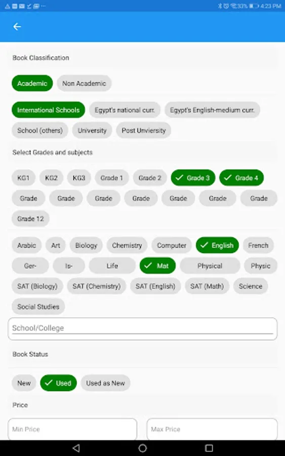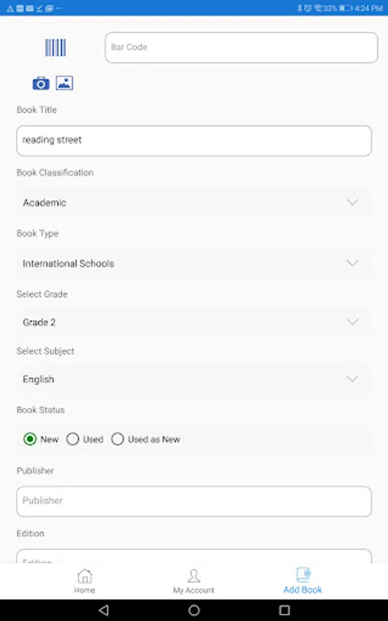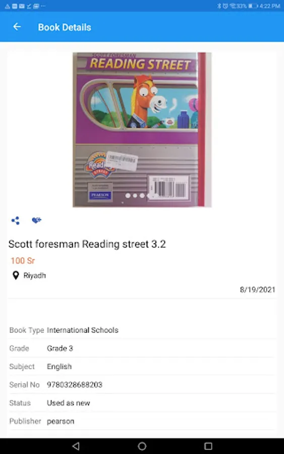 This app enables you to display your academic and non-academic books for sale in a simple way, you can add your book details (serial no, images , grade , subject and description) and it will be displayed on the application. If any of app visitors need your book, the buyer will contact you directly.