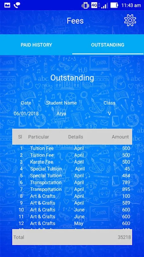 Parents get the privilege to know their kid's attendance daily and monthly basis,get messages from teachers and locate their kids while travelling in school bus.