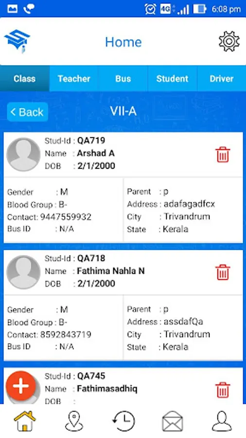 School module has functionalities like add/edit classes ,divisions, teachers, buses, students and drivers. Most outstanding feature is the live tracking of all the school buses. Travel history of buses are also recorded and saved which can be viewed anytime.