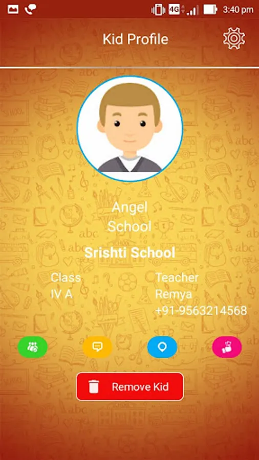 Parents get the privilege to know their kids' attendance on daily/monthly basis, communicate with respective teachers and also locate the school bus their kid is travelling.