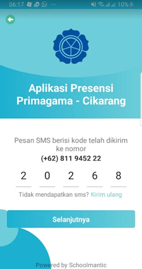 1. Enter the student guardian's cellphone number (cellphone number must be registered in the Primagama Attendance application)