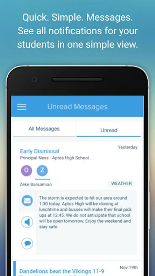 - Easy-to-read inbox that captures all SchoolMessenger notifications, and now two-way teacher-parent-student messages (if enabled by school or district)