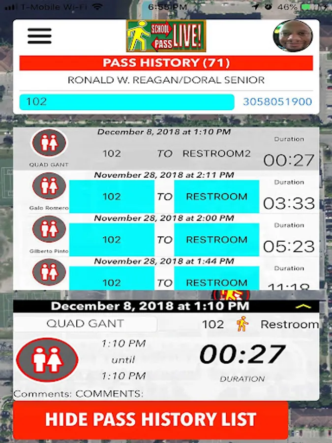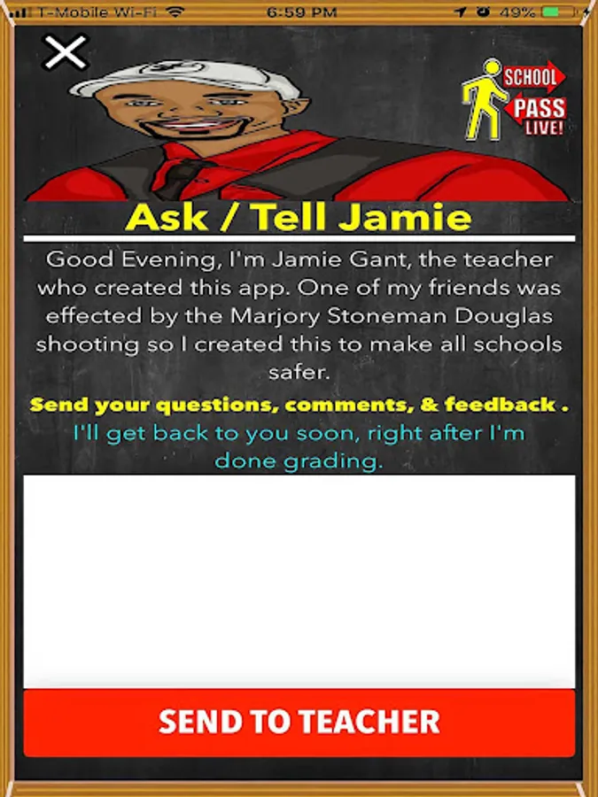School Pass Live was created in Miami by a high school Computer Science teacher, Jamie Gant. In 2016, he created for his classroom to help prevent loss of instructional teaching time. After the shooting at Marjory Stoneman Douglas occurred, only 30 minutes away from his high school, Mr. Gant set out to make his classroom pass available for everyone. He completely redesigned and coded School Pass Live! for all schools to use "Safer, Easier, Smarter, Passes For Classes"™.