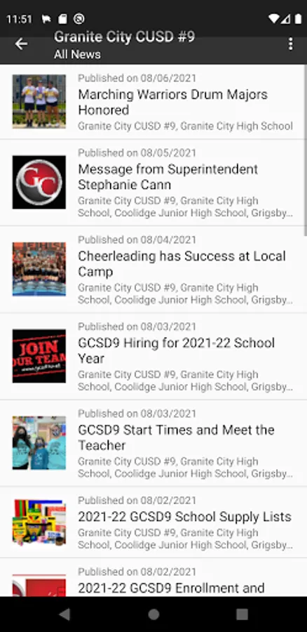 The Granite City CUSD #9 app allows you to stay up-to-date with the latest news, events, and notifications from the district, including all of our schools.