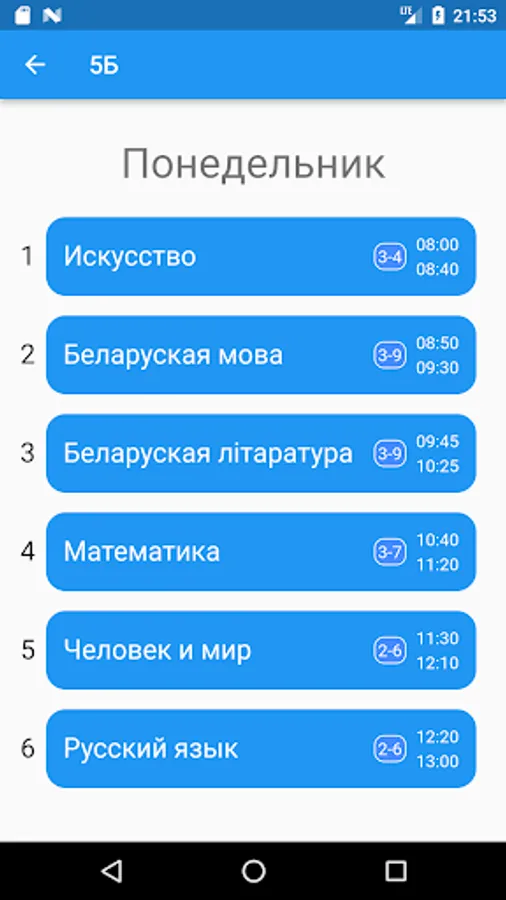 Lesson schedule for school 24 in Gomel 2021-2022