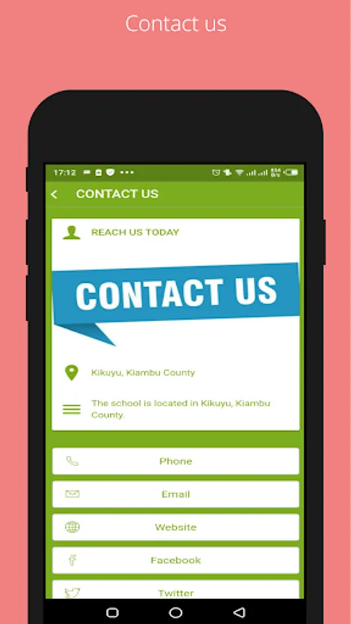 Links where app users and parents can contact the school via phone, email or website and/or postal address.