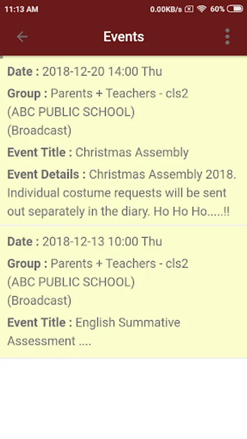 - School can set up notifications for upcoming events at the school with reminders to allow parents to plan ahead.