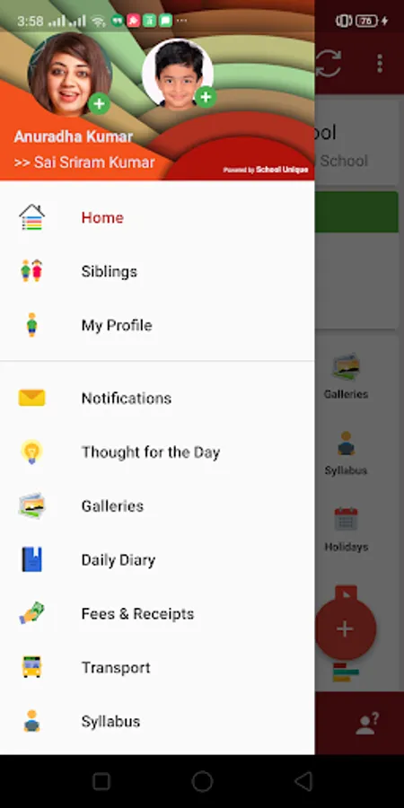 School Unique Parent App helps Parents to keep track of their Kid's Attendance, Daily diary, Class Time Table from anywhere and anytime.