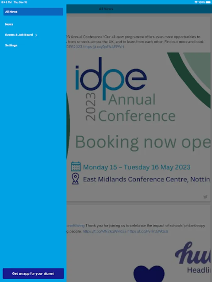 Stay up-to-date with the latest news, events and jobs in the IDPE app.