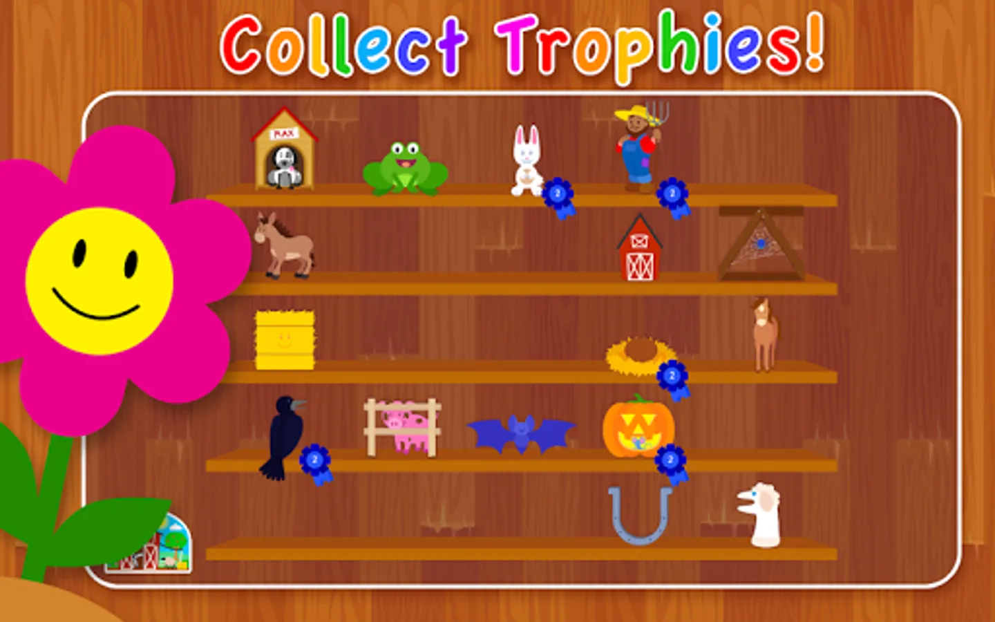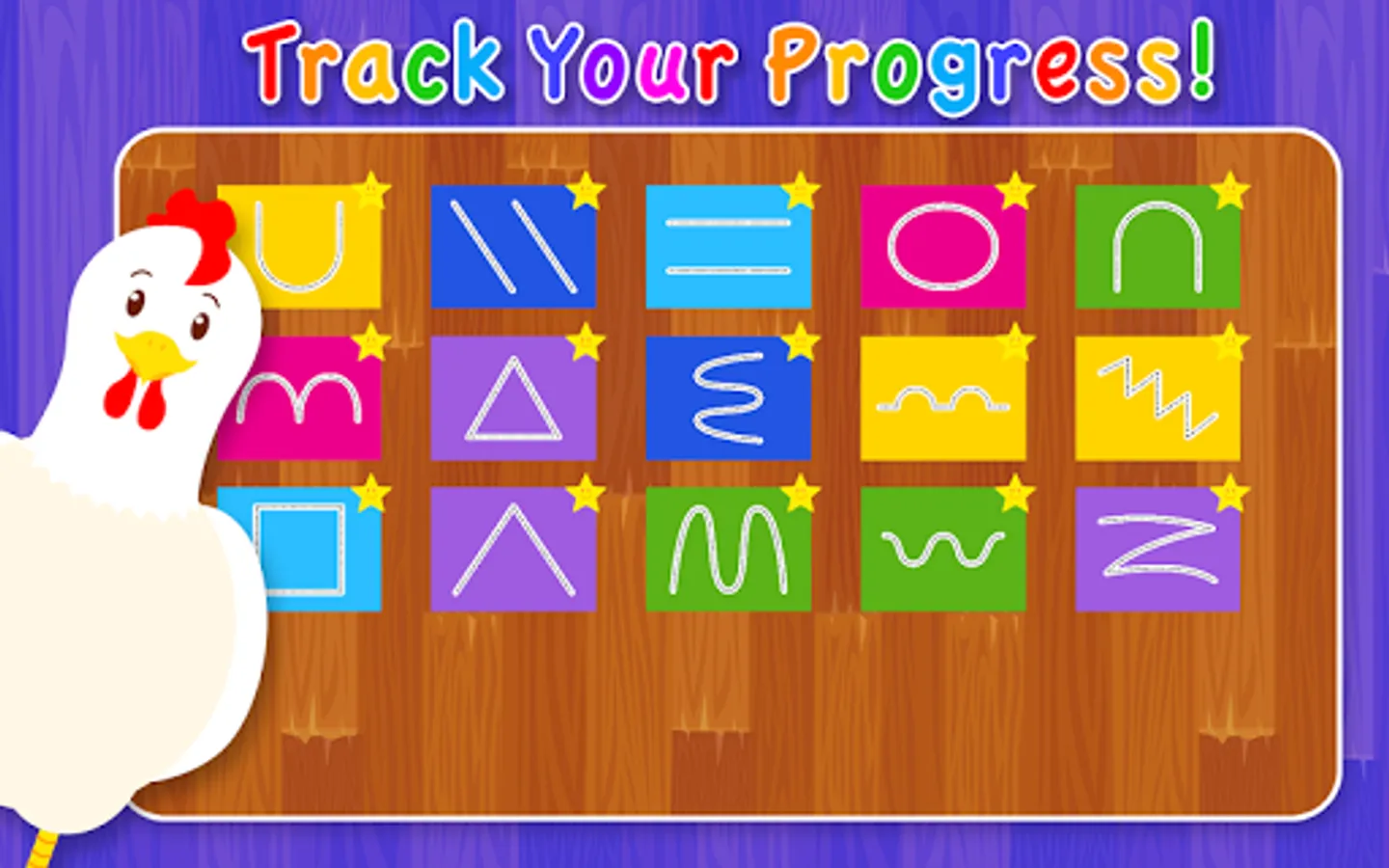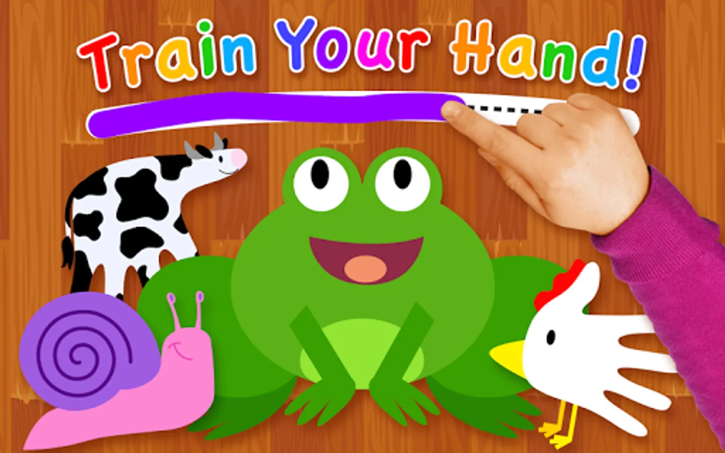 Making lines of all kinds is a first step in pre-writing. With this mega-fun Train Your Hand app, toddlers and preschoolers use one finger to trace dotted lines that form curved, wavy, and straight paths. “So many shapes, you’ll never get bored. Trace them correctly, get a reward.” The completed lines suddenly morph into surprising, squeaking and squawking animated critters! LOL. Next, those critter rewards get stored on shelves in the “trophy room.” Watch them stack up fast. Clear instructions and extra wide pathways for following the patterns help toddlers and early preschoolers confidently complete each tracing activity. Big shapes, familiar patterns, and colorful characters will have little learners happily tracing lines in no time, and they will develop the fine motor skills they need to write as they stretch their imaginations. When they are ready for a break, tune in to a charming song written and performed by multi-platinum-winning musician Brian Vander Ark. Watch little ones delight in singing about “A pig that sneezes disgusting goo (and) a bat that cuts a baseball right in two.” This is take-anywhere learning fun!