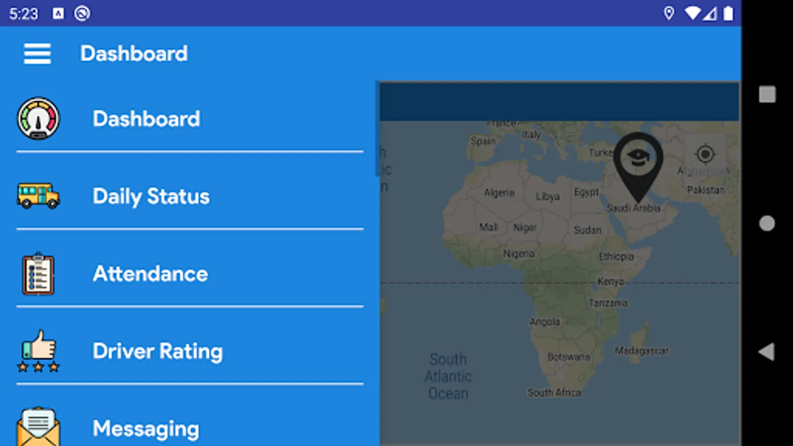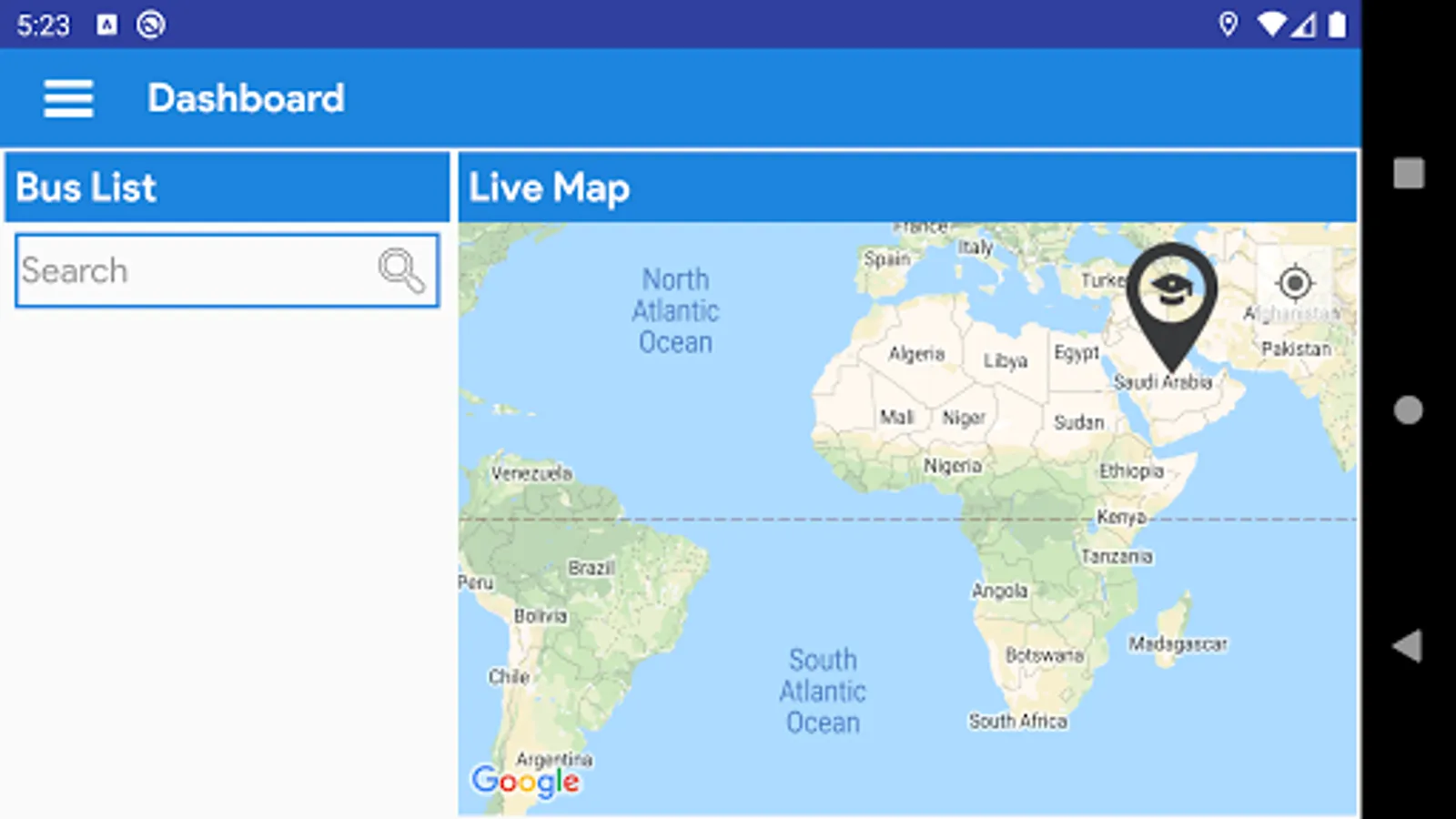 Dashboard allows to track the bus live on the map, while system automatically alerts in case a driver is over speeding.